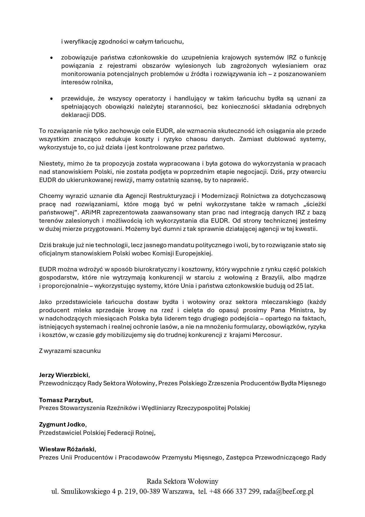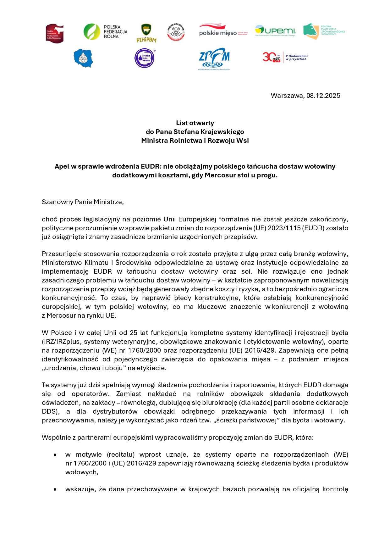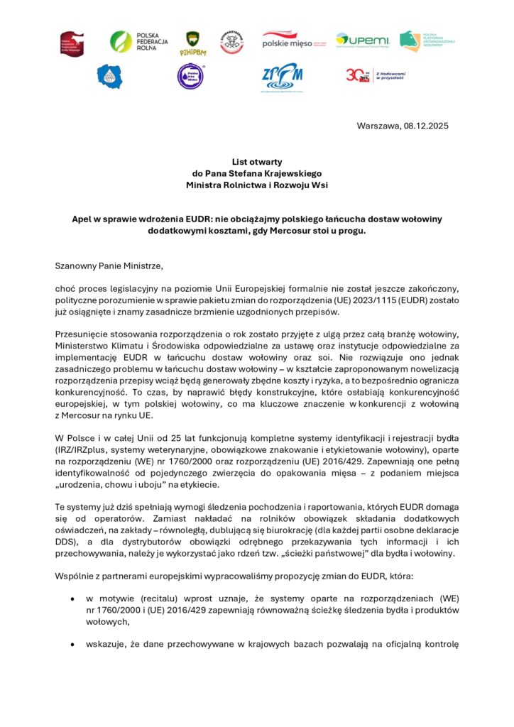 List otwarty do Stefana Krajewskiego, Ministra Rolnictwa i Rozwoju Wsi – Apel w sprawie wdrożenia EUDR
