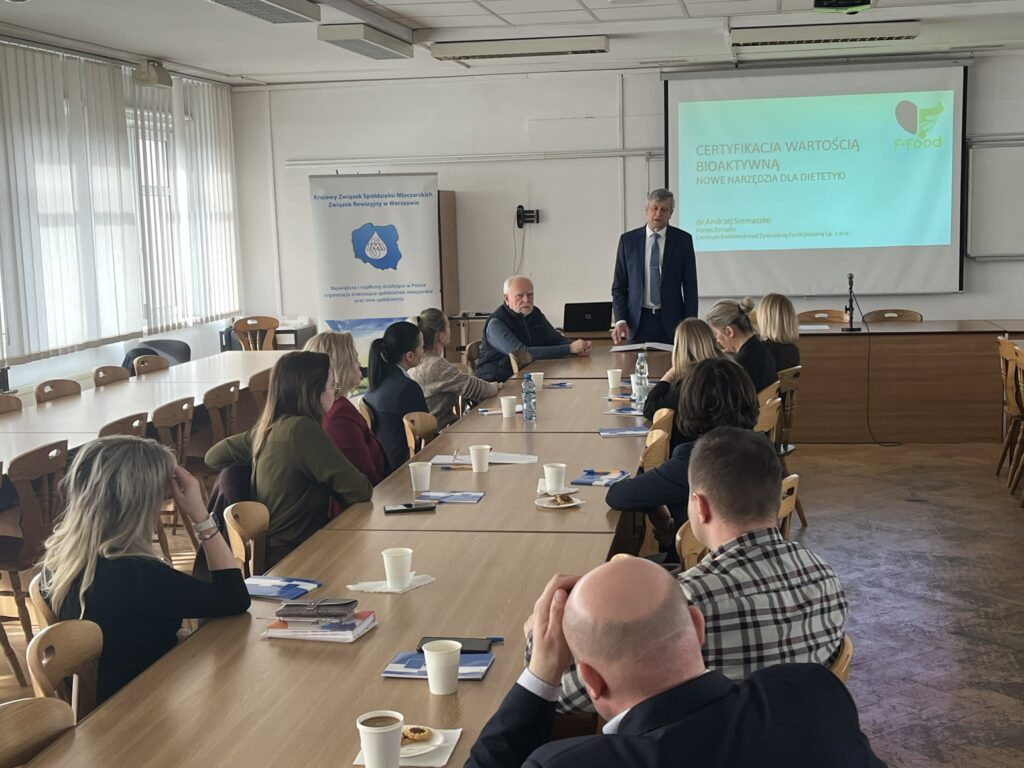 „Certyfikacja produktów wartością bioaktywną”, które przedstawił dr Andrzej Siemaszko (CBŻF). Była to cenna część spotkania, otwierająca dyskusję na temat nowych możliwości budowania przewagi konkurencyjnej poprzez eksponowanie cech prozdrowotnych produktów oraz wykorzystanie nowoczesnych rozwiązań, takich jak etykiety cyfrowe i indeksy oceny wartości odżywczej.