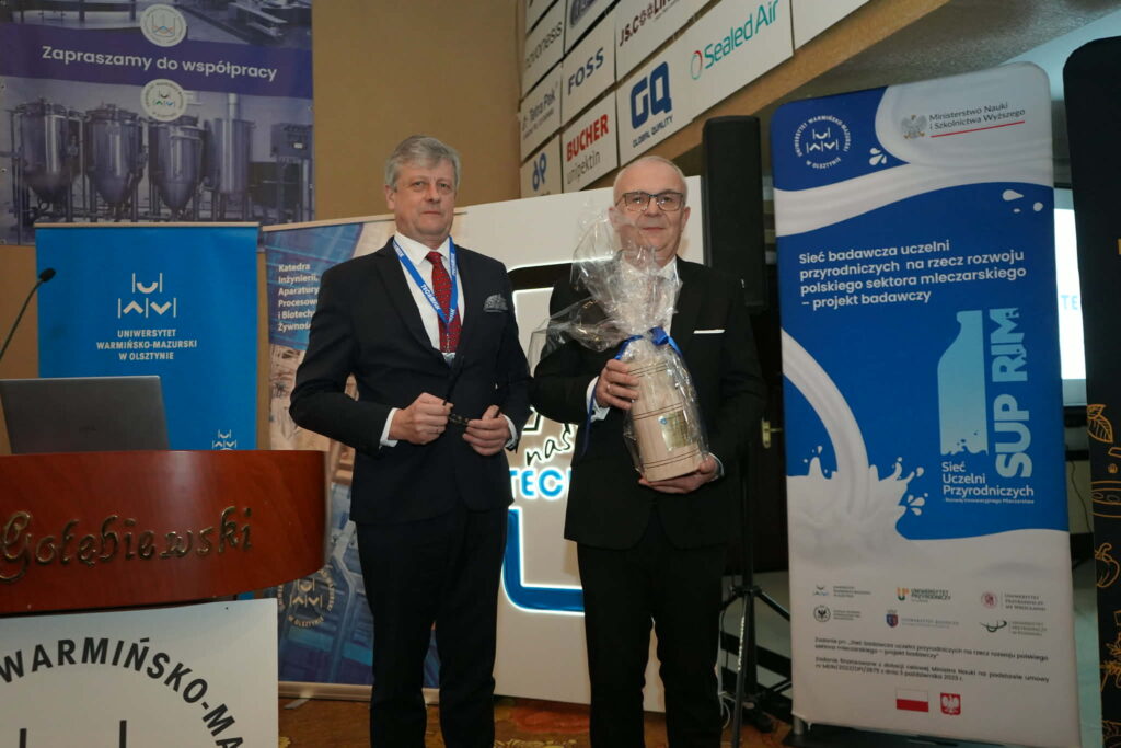 W wydarzeniu uczestniczył także Arkadiusz Pisarek, Prezes zarządu KZSM Zw. Rew., który wręczył symboliczne wyróżnienie – maselnicę, będącą tradycyjnym symbolem branży mleczarskiej – dla dr. hab. inż. Fabiana Dajnowca. Wyróznienie stanowiło wyraz uznania za jego wybitny dorobek naukowy, wieloletnie zaangażowanie w rozwój polskiego mleczarstwa oraz konsekwentną działalność na rzecz upowszechniania wiedzy i wspierania postępu technologicznego w sektorze.